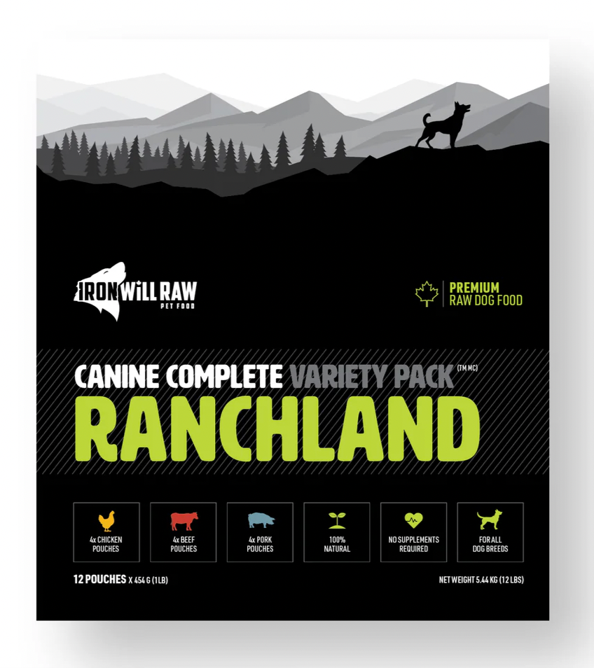 Ranchland 12 lb Variety Case Includes:4x Canine Complete Chicken & Beef Dinner4x Canine Complete Beef Dinner4x Canine Complete Pork Dinner