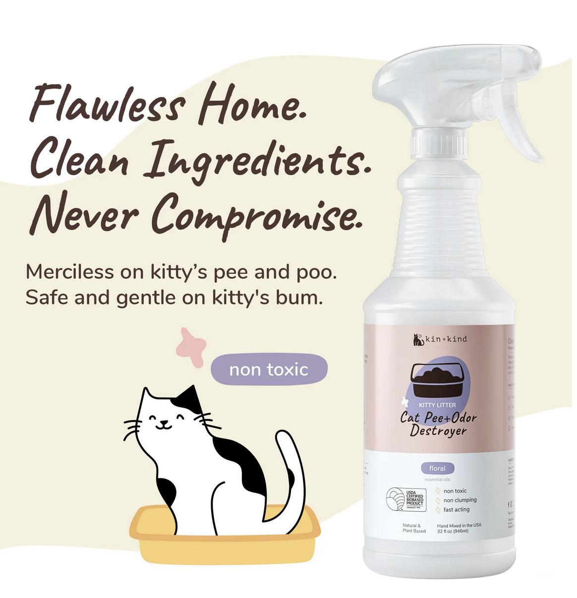 Kin & Kind - Odour/Stain Spray - Kitty Litter - Floral - 32oz
