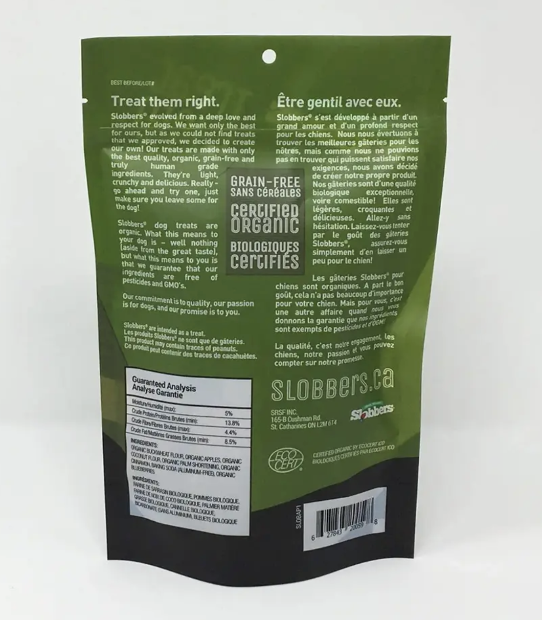 Organic buckwheat flour, Organic apples, Organic palm shortening, Organic coconut flour, Organic cinnamon, Organic blueberries, Baking soda (aluminum-free).