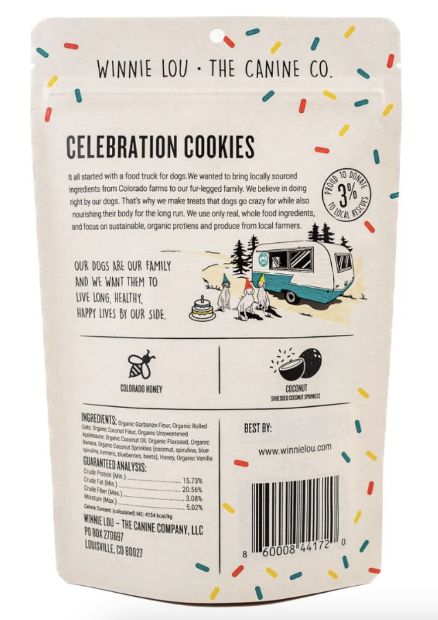 Organic Garbanzo Bean Flour, Organic Rolled Oats, Organic Coconut Flour, Organic Unsweetened Applesauce, Organic Coconut Oil, Organic Flaxseed, Organic Banana, Organic Coconut Sprinkles (Coconut, Spirulina, Blue Spirulina, Turmeric, Blueberries, Beets), Honey, Organic Vanilla